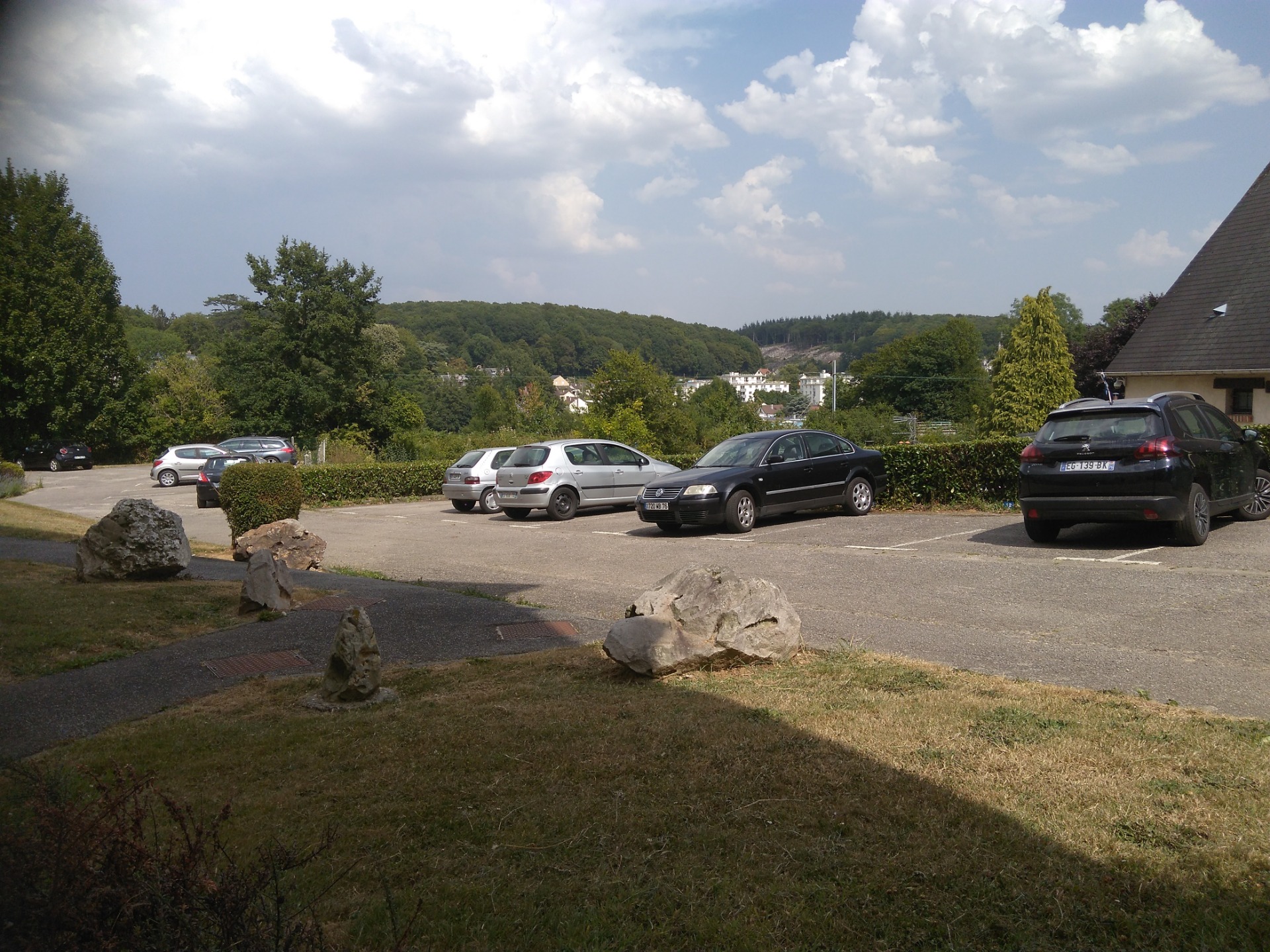 ci-dessus, le parking vu depuis les fenêtres du logement. La place attribuée à notre logement est située à coté du véhicule le plus à droite sur la photo.