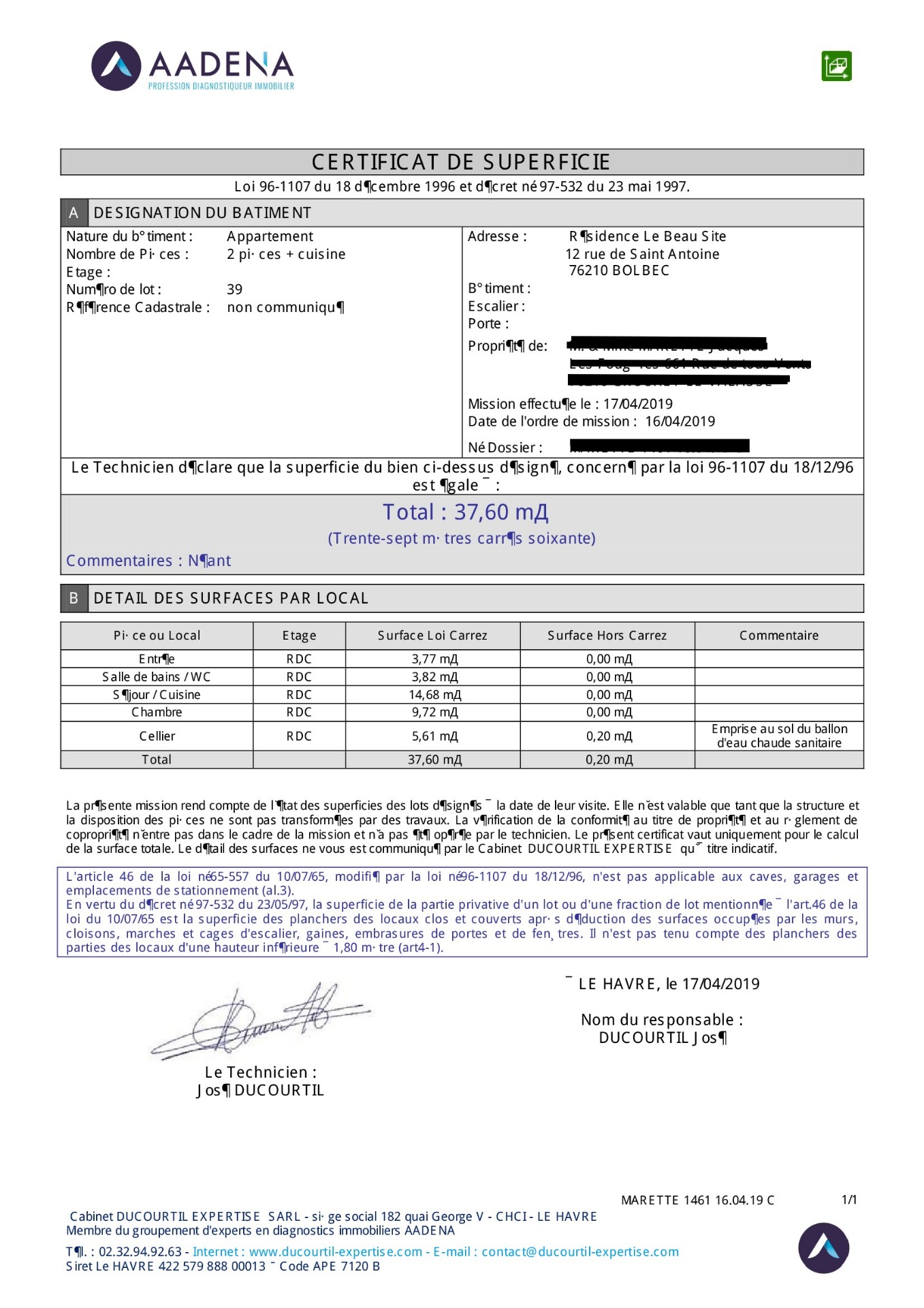 - dépôt de garantie correspondant à un mois 1/2 de loyer