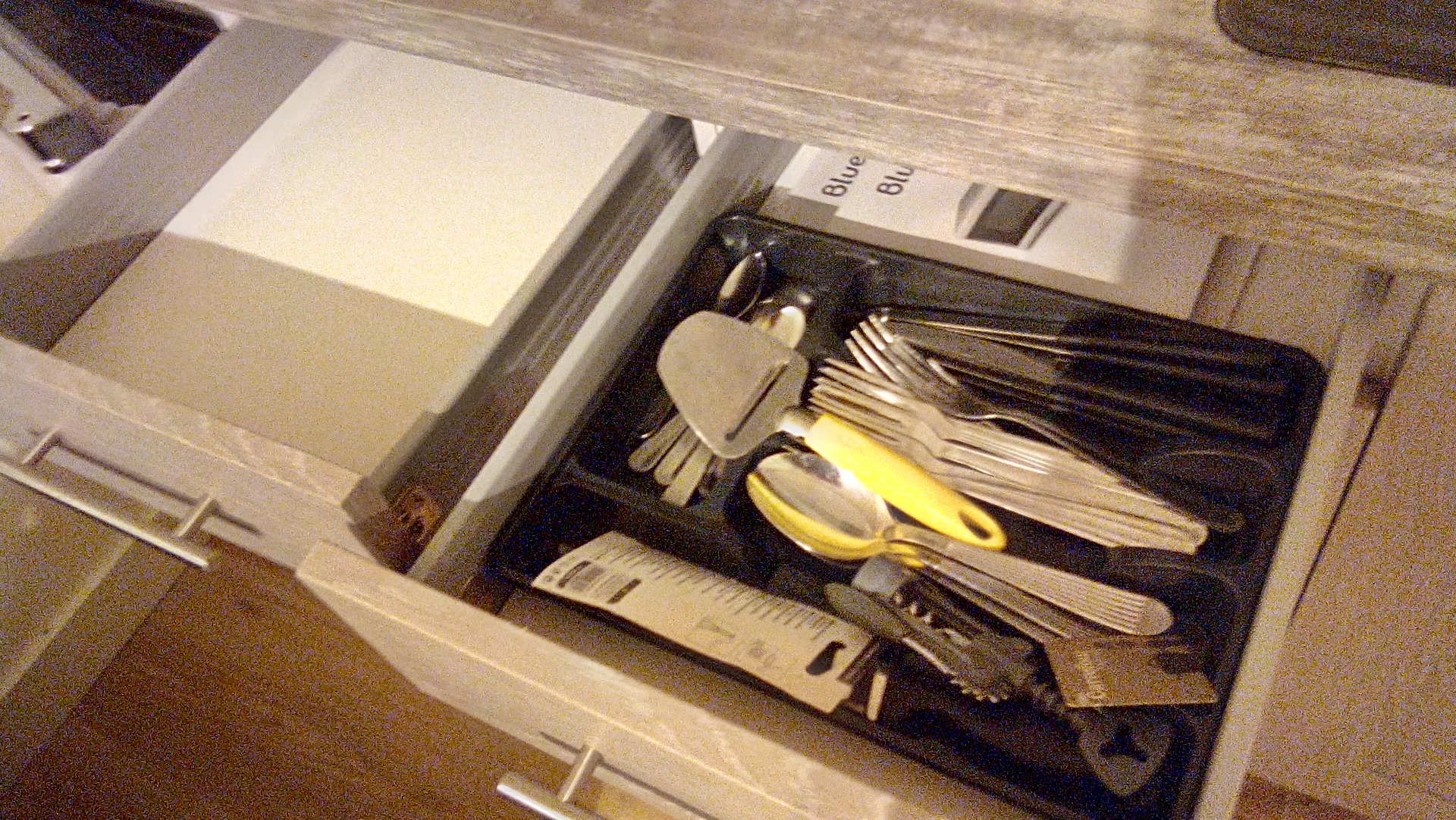 L'halogène noir sur le cliché ci-dessus a été remplacé par un blanc car il présentait un défaut. Une lampe à poser a aussi été ajoutée.