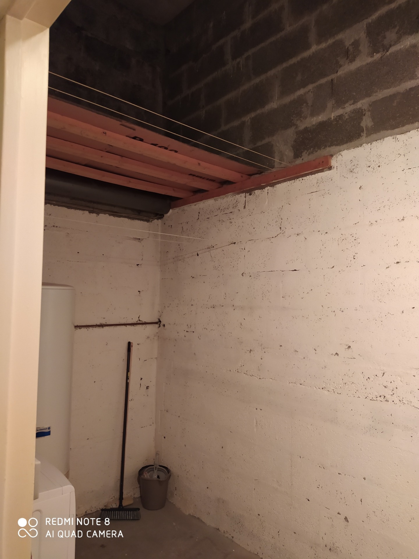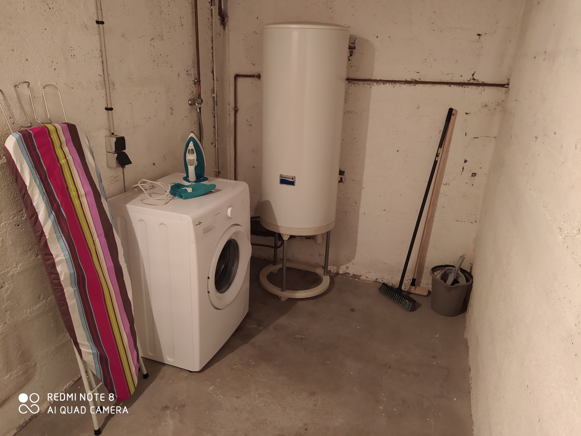 Le cellier a une hauteur sous plafond d'environ 4m. Cumulus, lave-linge (5kg), fer et table à repasser, s'y trouvent déjà.