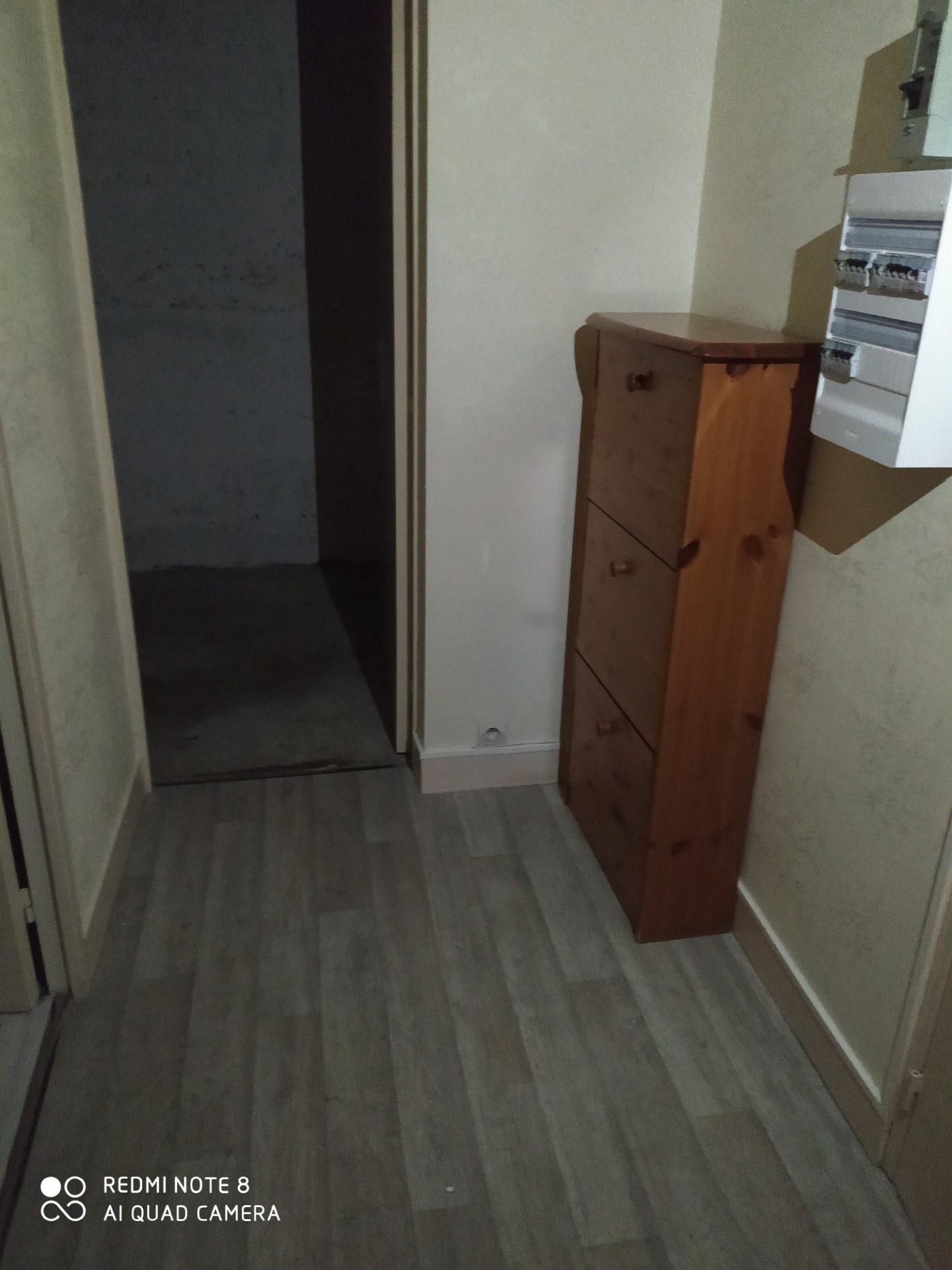 ci-dessous l'entrée desservant toutes les pièces avec au fond, le cellier. L'entrée est doté d'un meuble à chaussures.
