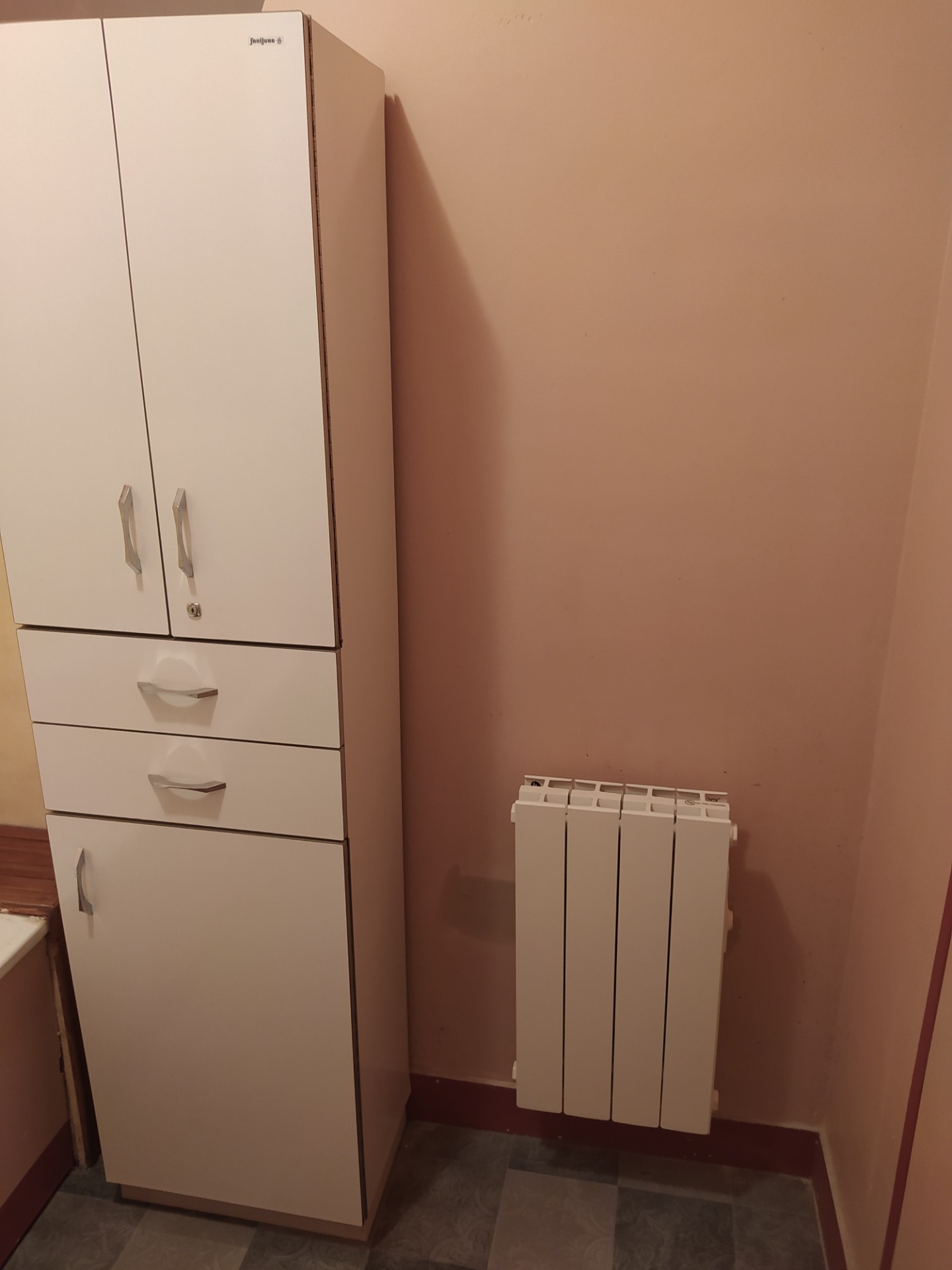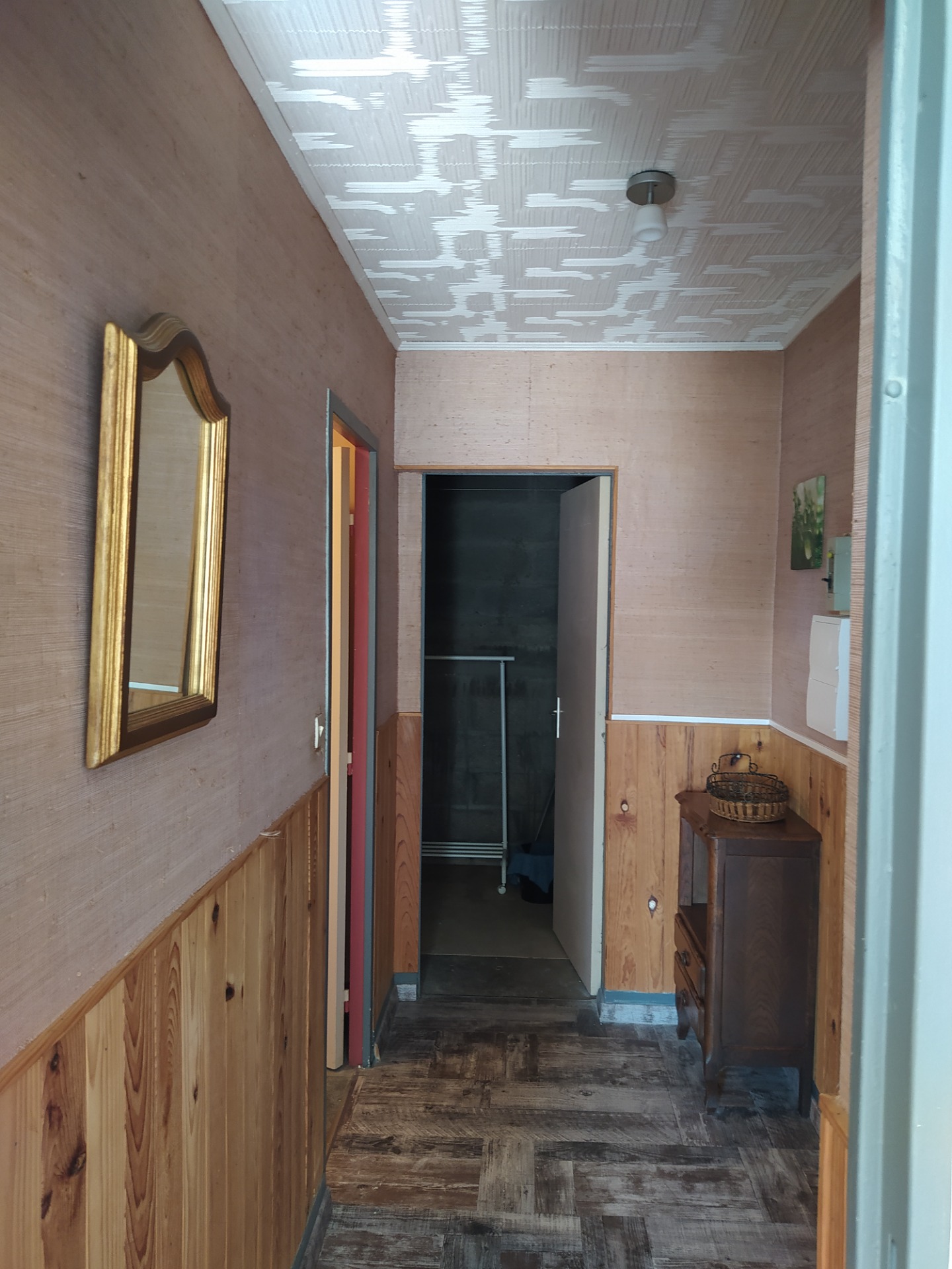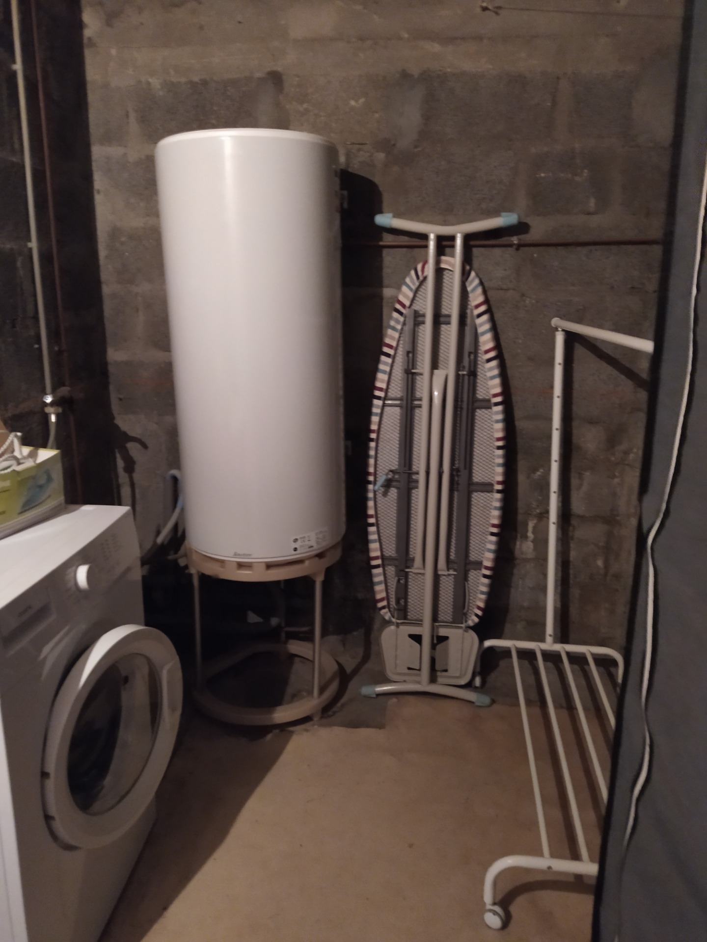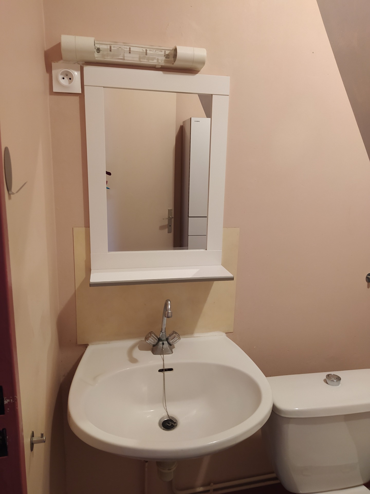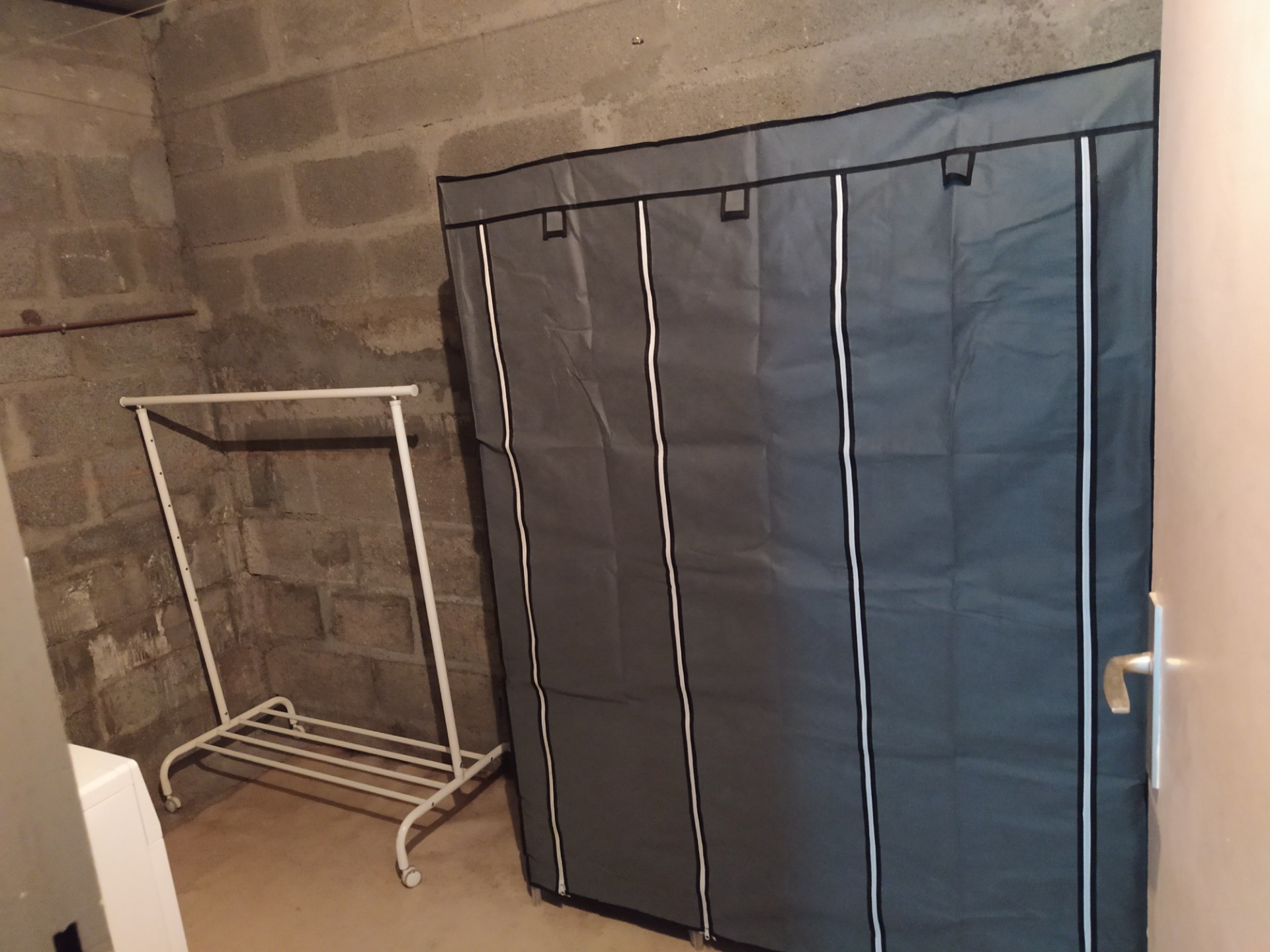 dispose d'un meuble de rangement. La pièce étant sans fenêtre, un extracteur d'humidité à été ajouté.