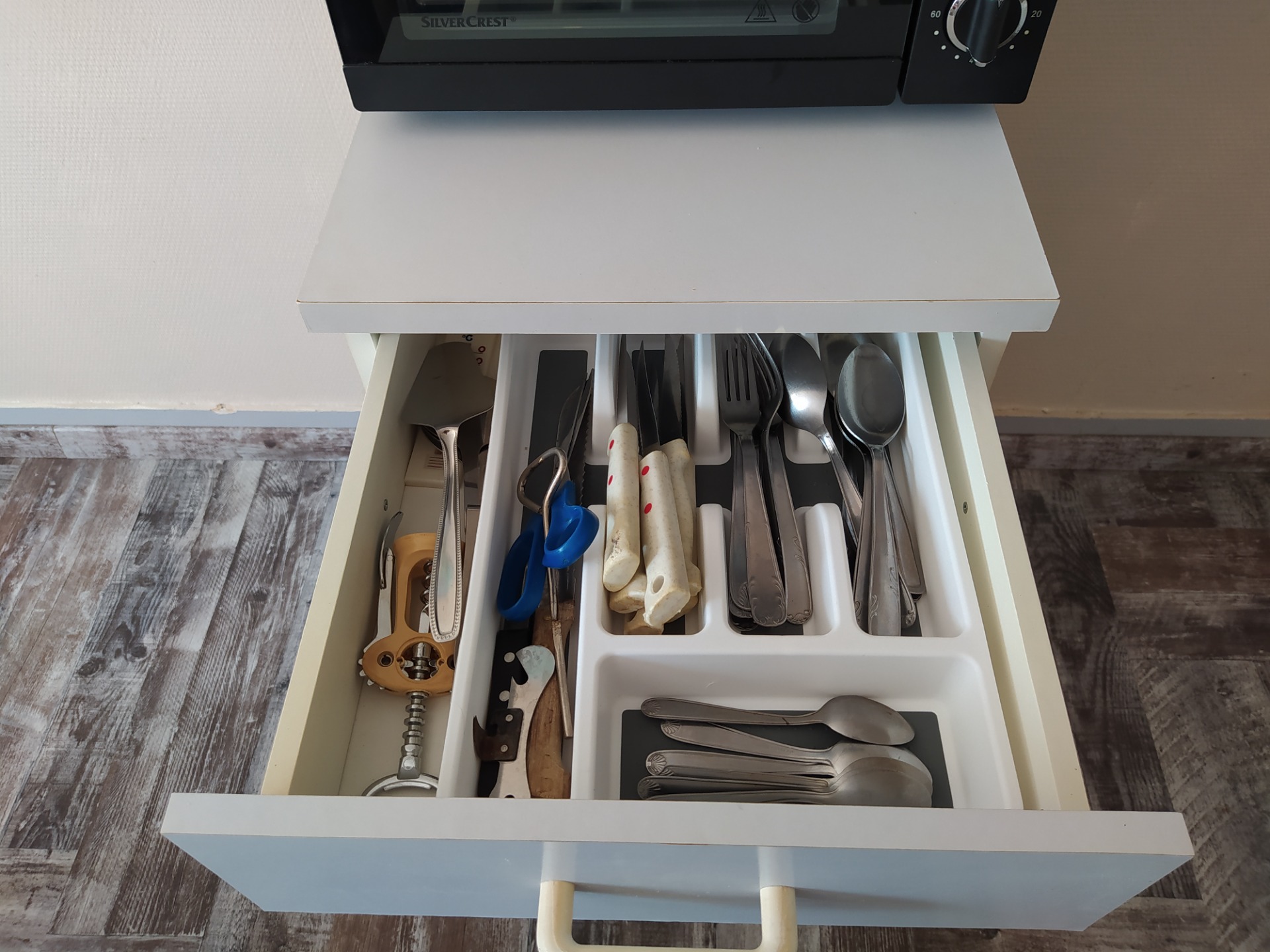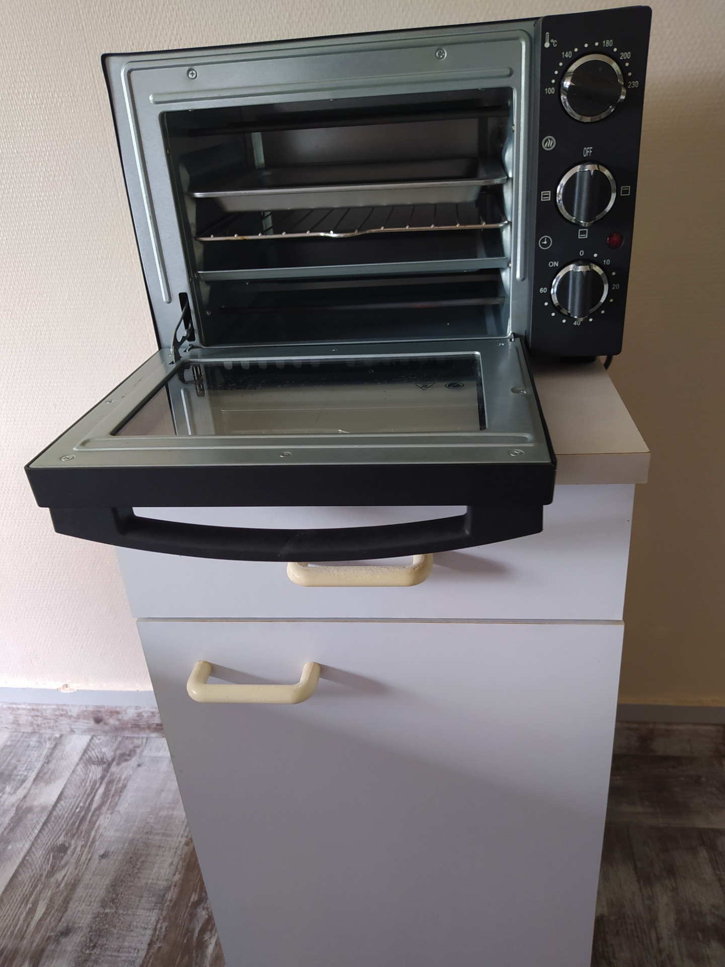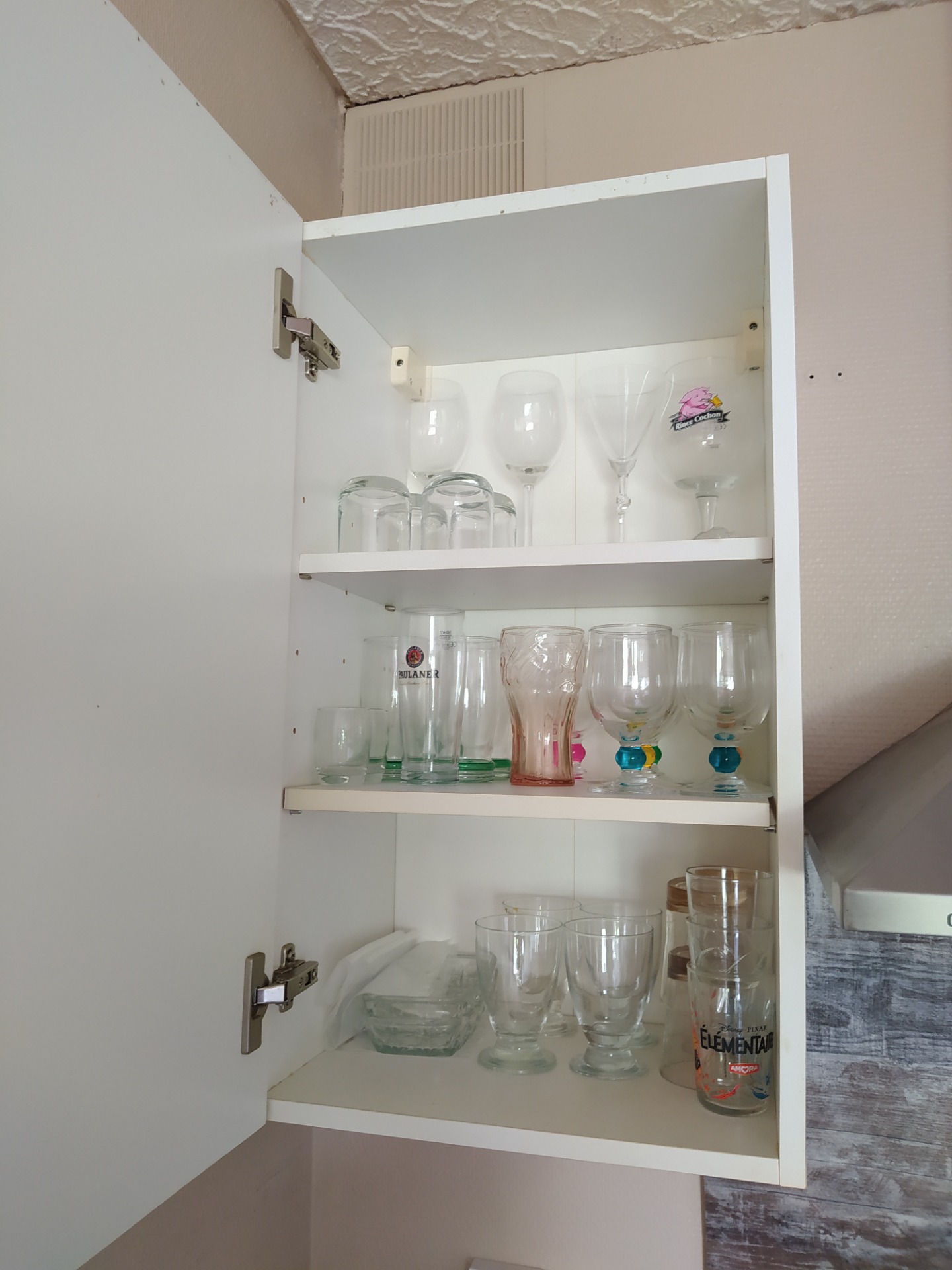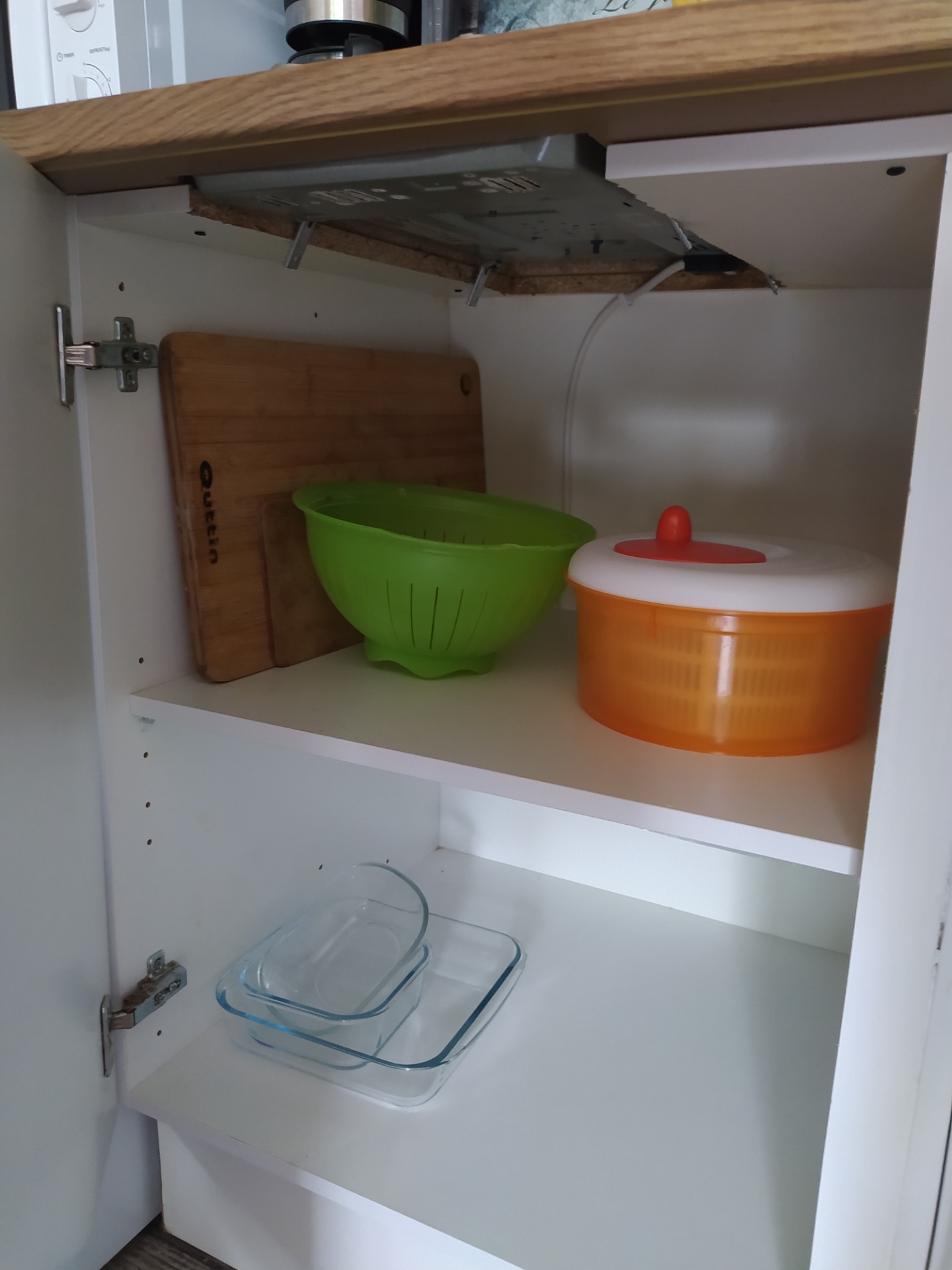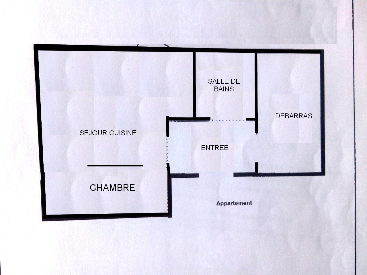 dispose d'un meuble de rangement. La pièce étant sans fenêtre, un extracteur d'humidité à été ajouté.