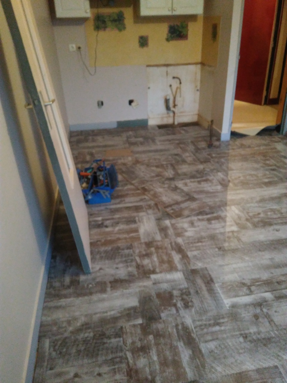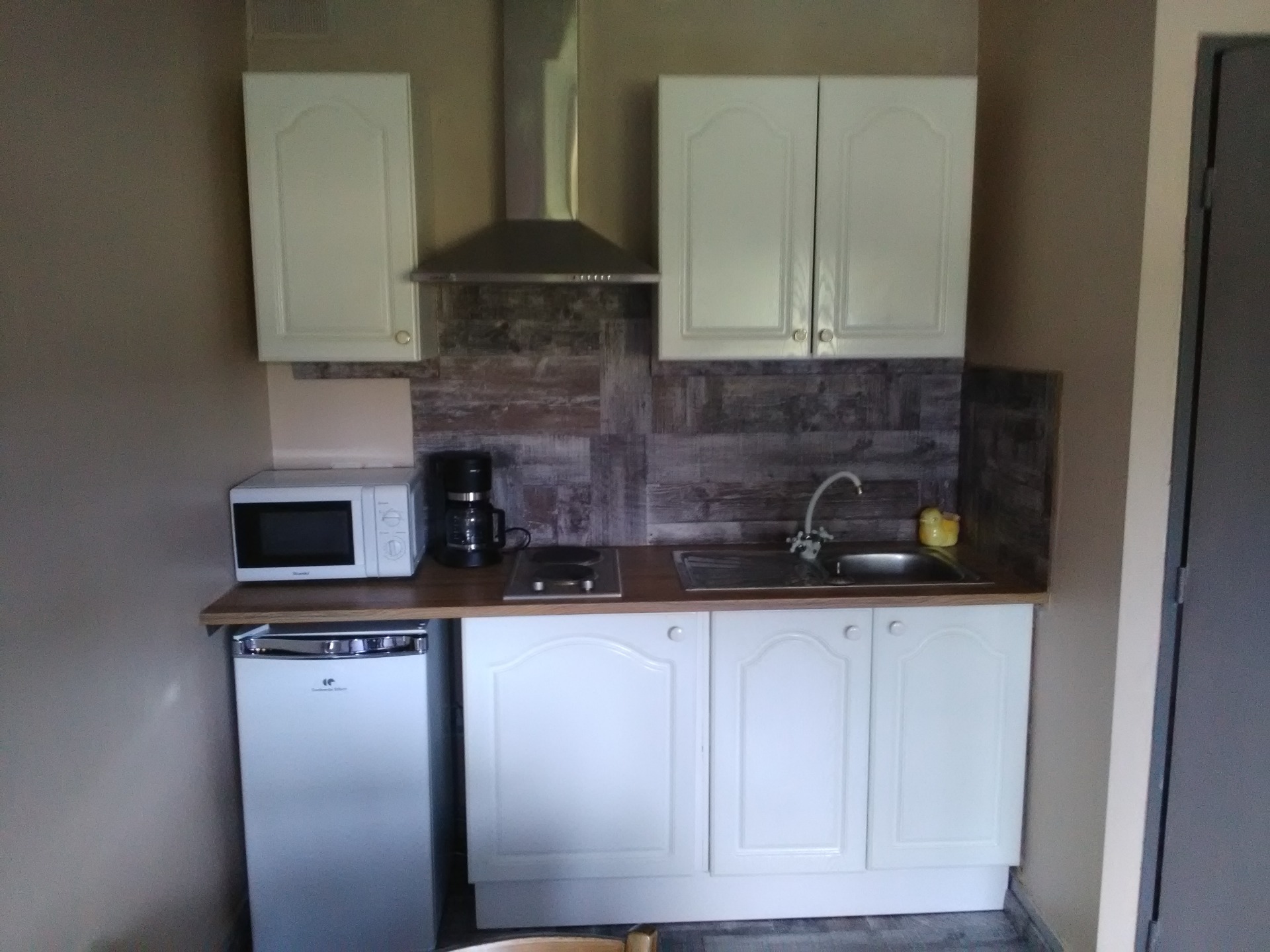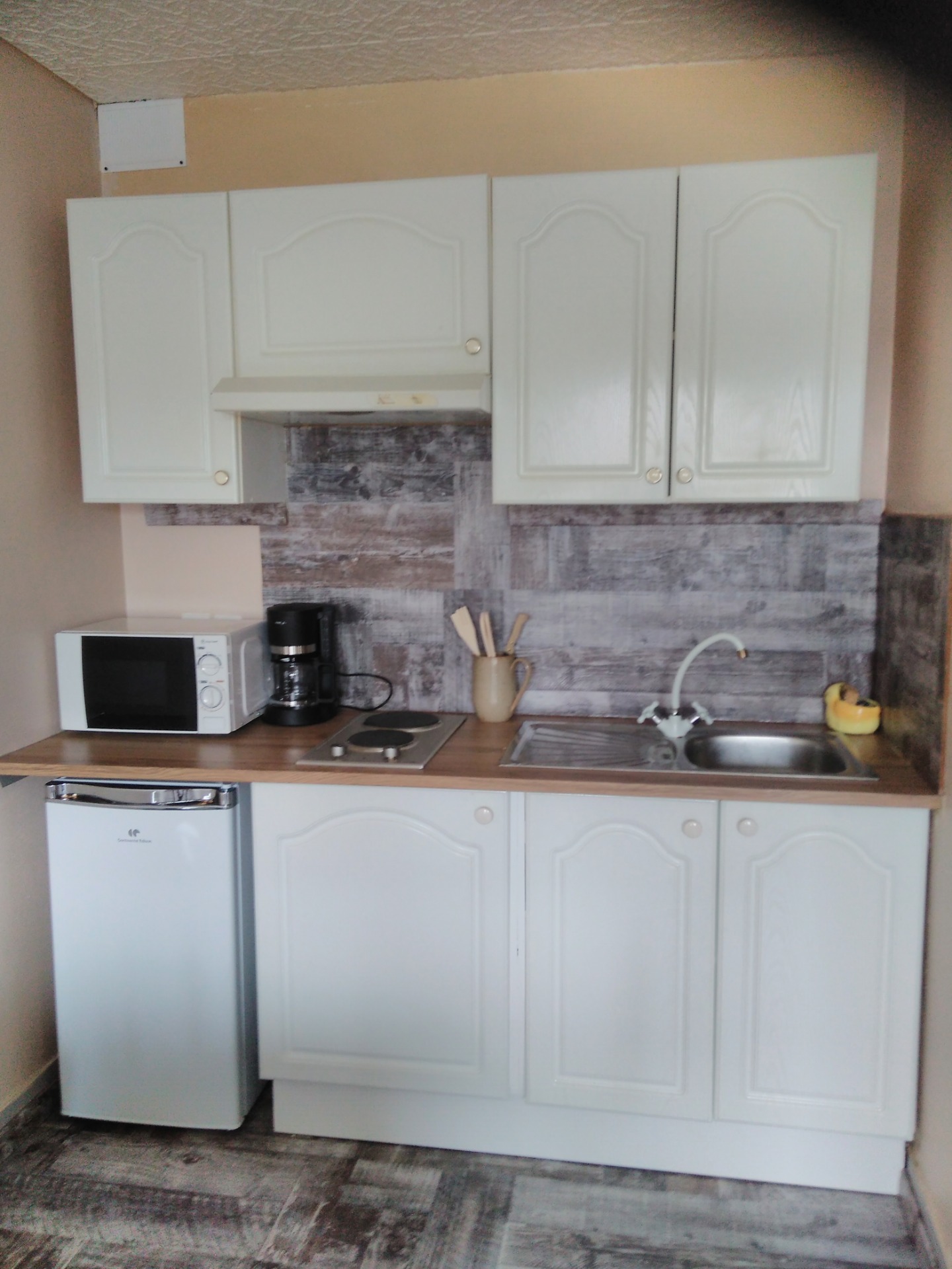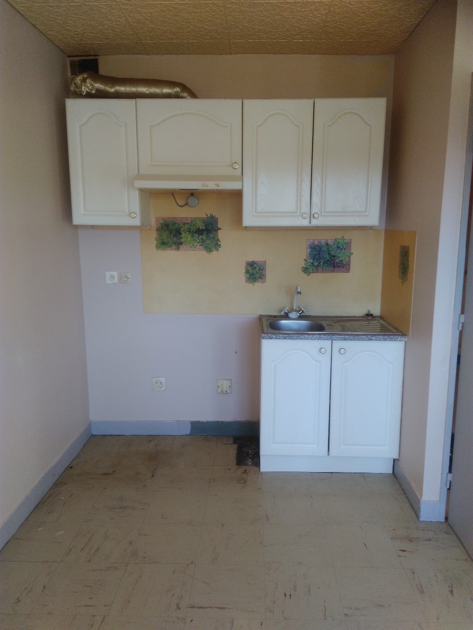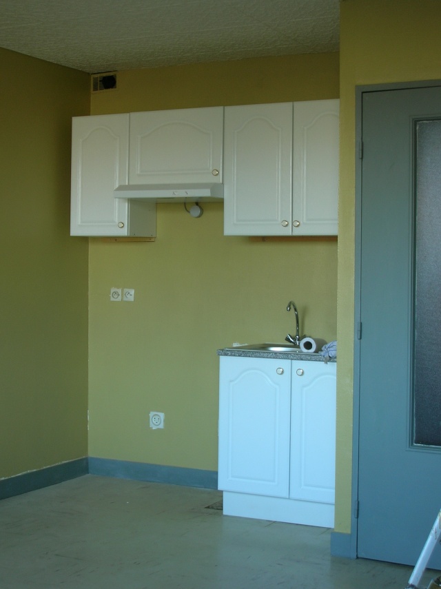 le meuble évier basique qui était en place à l'achat du logement a été remplacé par une cuisine meublée mais non équipée en électroménager .